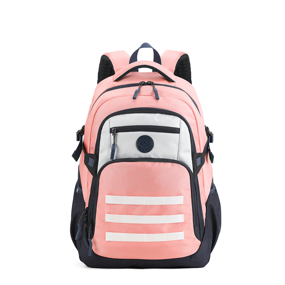 Esta mochila Aoking rosada posee dos compartimiento principales con bolsa para laptop, bolsas para otros items y bolsas frontales pequeñas.